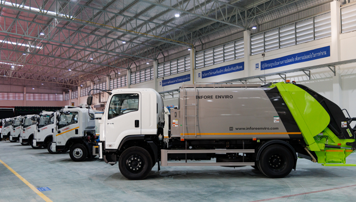10立方米垃圾壓縮車裝載能力比行業傳統產品高出10%,杜絕污水滴漏,高效破解垃圾處理難題;6立方米純電動清洗車裝水容積領先行業20%以上,作業能耗降低10%;8立方米掃路車清掃能力強,作業油耗低,能替代60名人工,每年可節約675萬泰銖。
